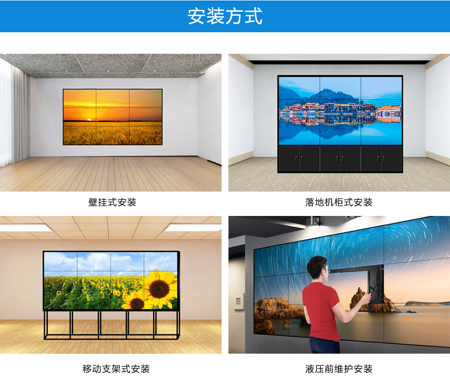 | 安裝方式 | 壁掛、嵌入式、落地機柜、落地支架等選配 | |